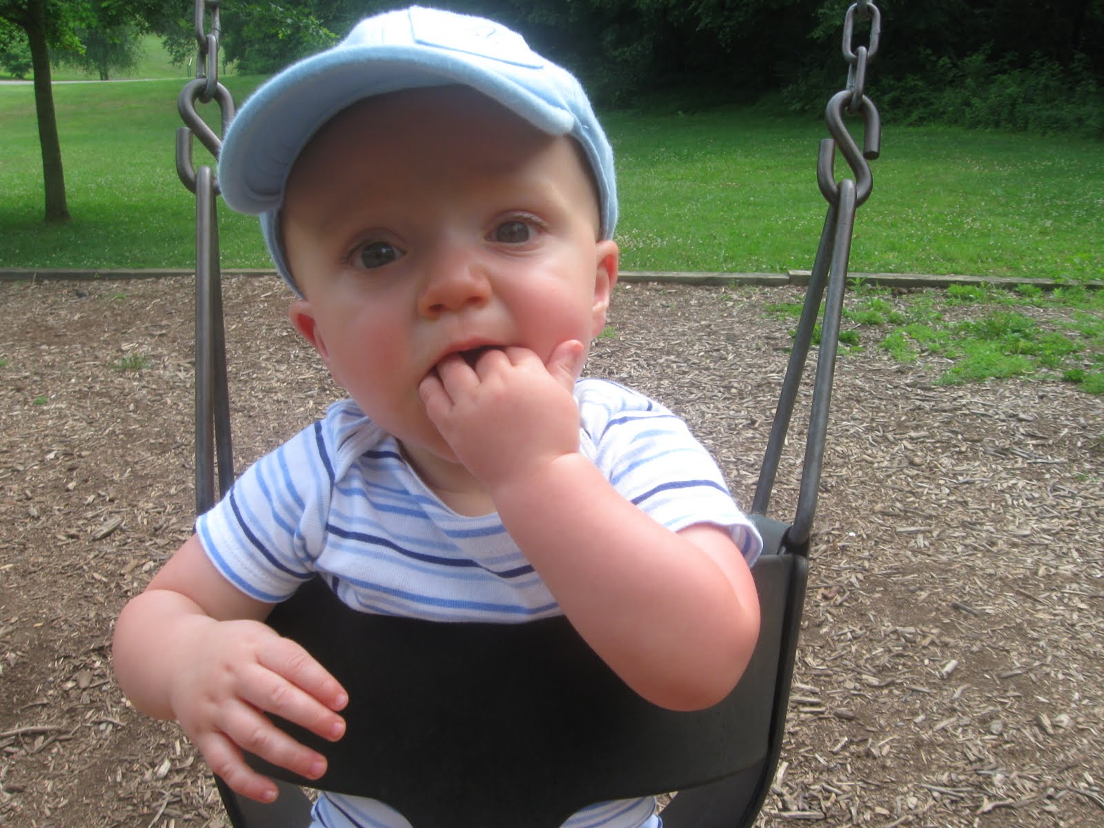 Onto the swings! He now has 8 teeth! Working on 2 more!