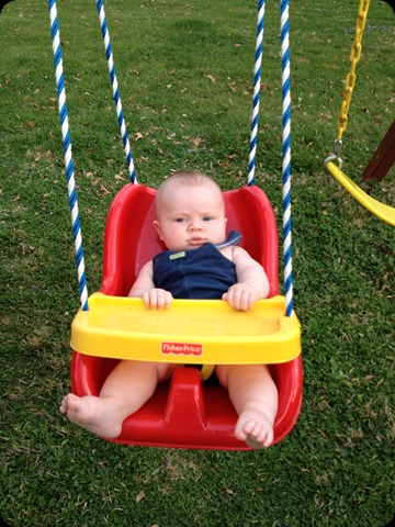 Cole LOVES the swing, just like Connor did! On the left is Baby Cole, at 6 months on 3/29/12, and on the right is Connor, at 9 months on 5/25/10